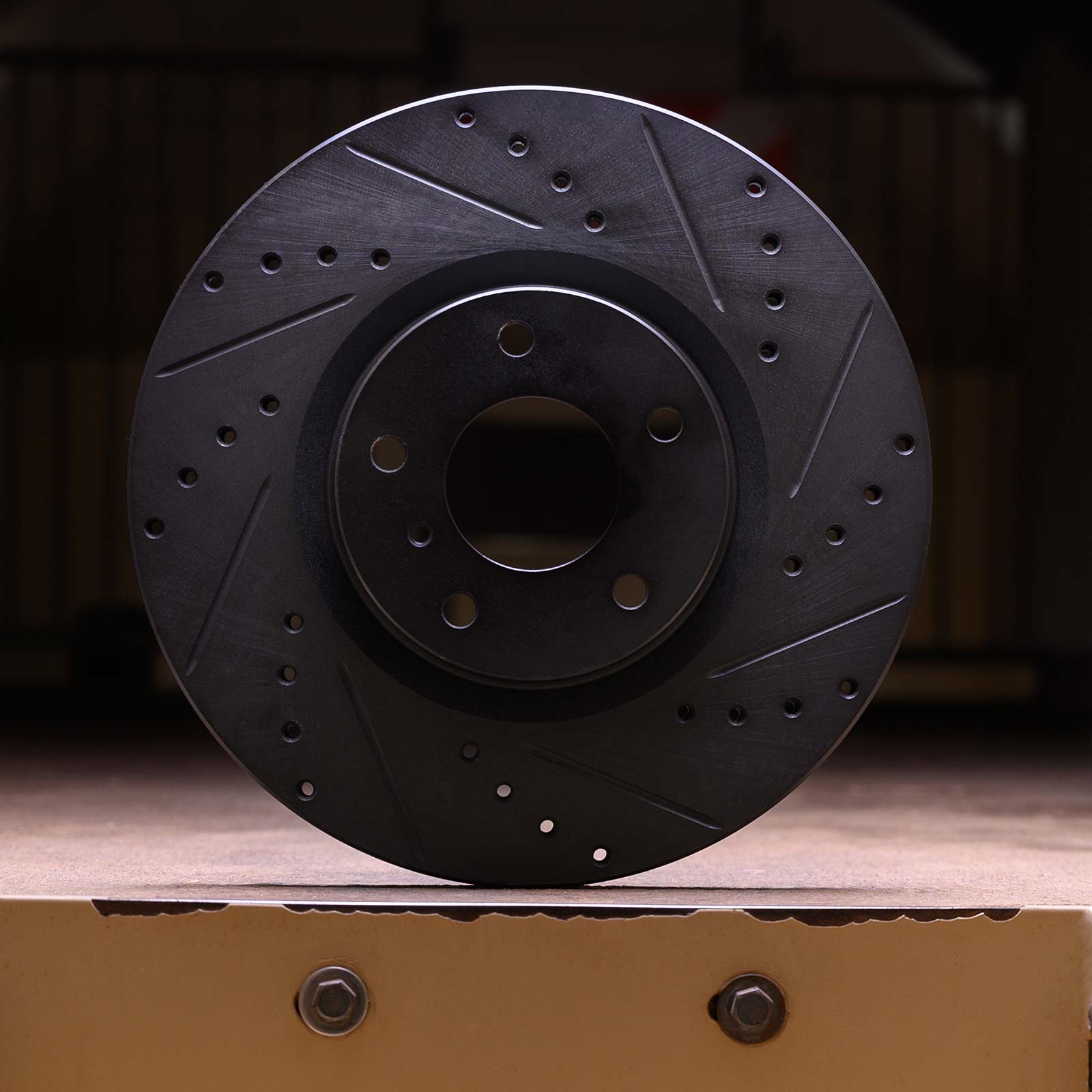When you first receive your order they will be completely black. After initial brake-in procedure, where the pad and the rotor comes into contact, the black will wear off leaving the hub, edge, and inner vanes black.